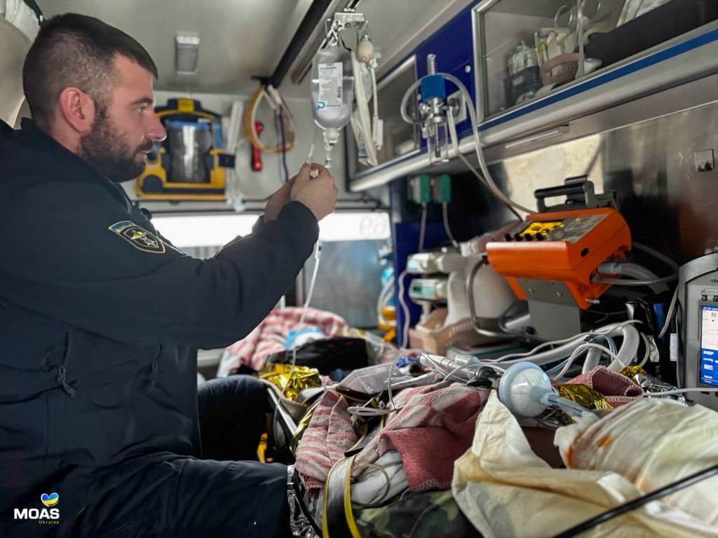 Під час переміщення хворого команда MOAS забезпечувала штучну вентиляцію легень, безперервний моніторинг життєвих функцій, інфузійну терапію, профілактику гіпотермії, адекватну анальгезію та медикаментозну седацію.