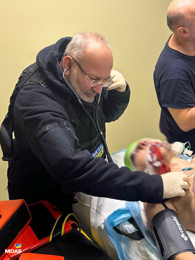 Після оперативного втручання та відносної стабілізації стану, пацієнта потрібно було транспортувати до профільного медичного закладу, що у відповідності до складності травм постраждалого вимагало знань та досвіду в забезпеченні медичного супроводу таких поранених. Військові лікарі викликали реанімаційну бригаду MOAS.