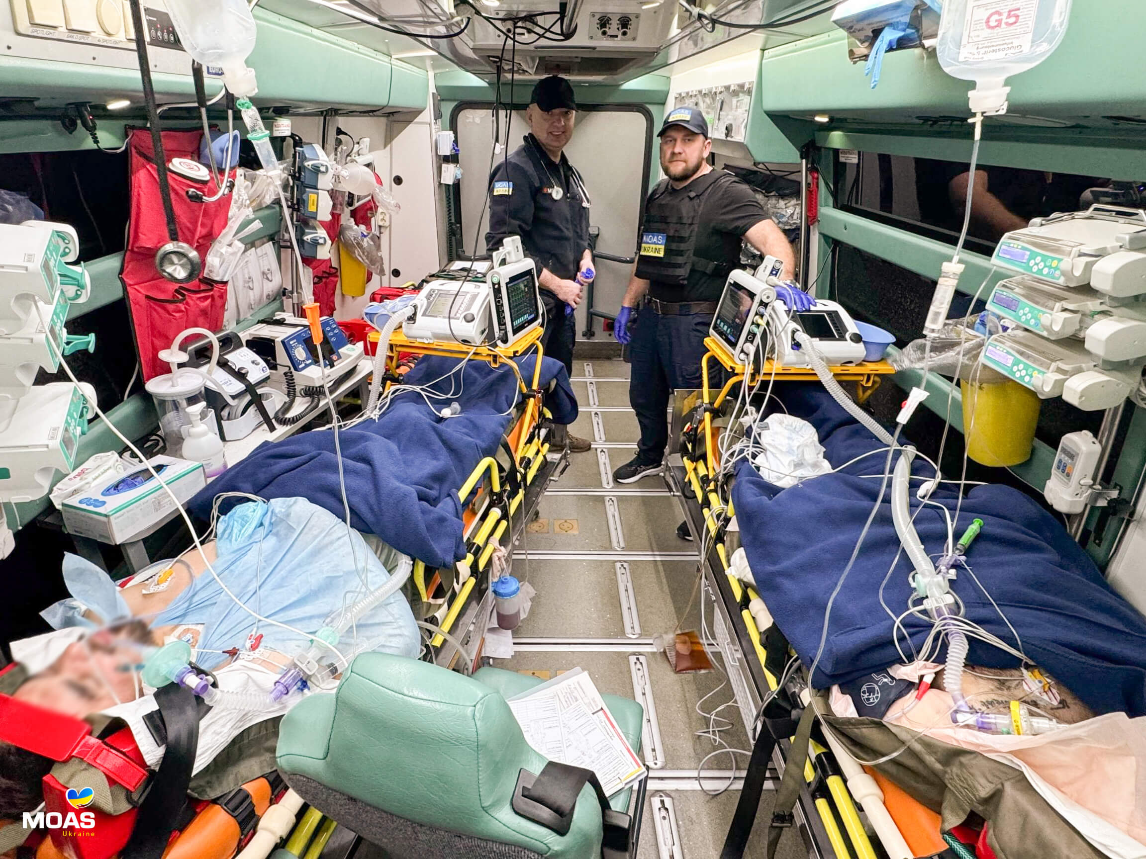 Двоє важкопоранених та троє військовослужбовців із незначними осколковими ураженнями та закритими переломами кісток були евакуйовані до тилових лікарень одним рейсом. Для одночасного транспортування застосовано спеціалізований автомобіль, обладнаний для перевезення семи