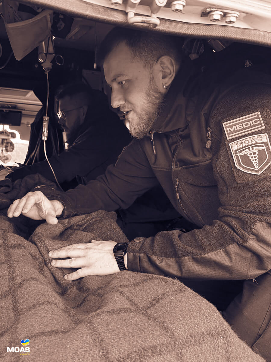 Як і для багатьох українців, 2022 рік став для Андрія надзвичайно складним. Він довго не міг змиритися з тим, що його професійні навички в анестезіології не можуть бути корисними війську. Зрештою Андрій вирішив долучитися до евакуаційної команди МОАС, аби рятувати тих, хто захищає усіх нас.
